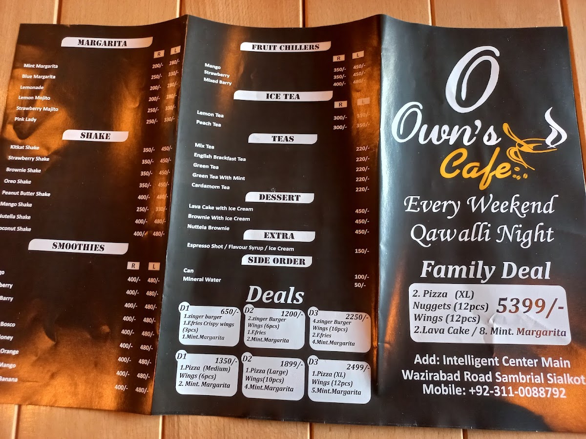 Welcome to Owns Cafe, a hidden gem located on the Main Sialkot - Wazirabad Dual Carriageway in Mandi Sambrial. This café offers a delightful menu that caters to fast food lovers and emphasizes a warm ambiance perfect for families and couples alike.